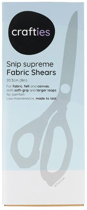 De Snip supreme kleermakersschaar van Crafties glijdt met gemak door allerlei soorten stof en mag niet ontbreken in je naaimand of atelier. Dankzij de softgrip handgrepen met grote ogen ligt de schaar comfortabel in de hand en behoud je optimale controle tijdens het knippen. Bovendien is deze stevige schaar ontworpen voor zowel links- als rechtshandigen. De snijbladen zijn gemaakt van roestvrij staal en gegraveerd met het logo van Crafties. De Crafties kleermakersschaar is 20,3cm lang en heeft een kleine opening in de handgreep, zodat je de schaar eenvoudig kunt ophangen of om je nek kunt dragen. Ideaal voor kleermakers, naaisters, quilters en hobbyisten.